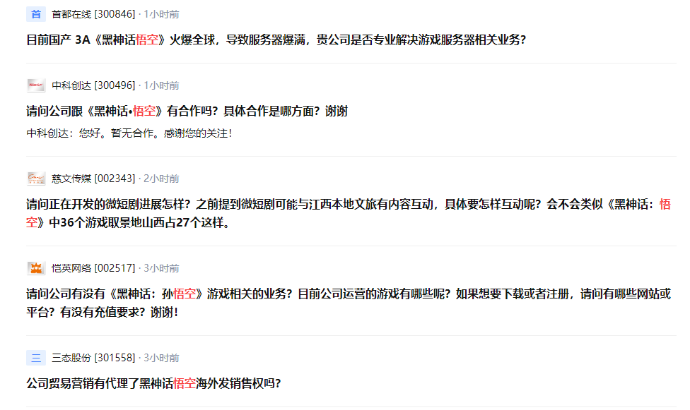 着急的股民也在互动易等平台追问公司是否与《黑神话:悟空》有关联。