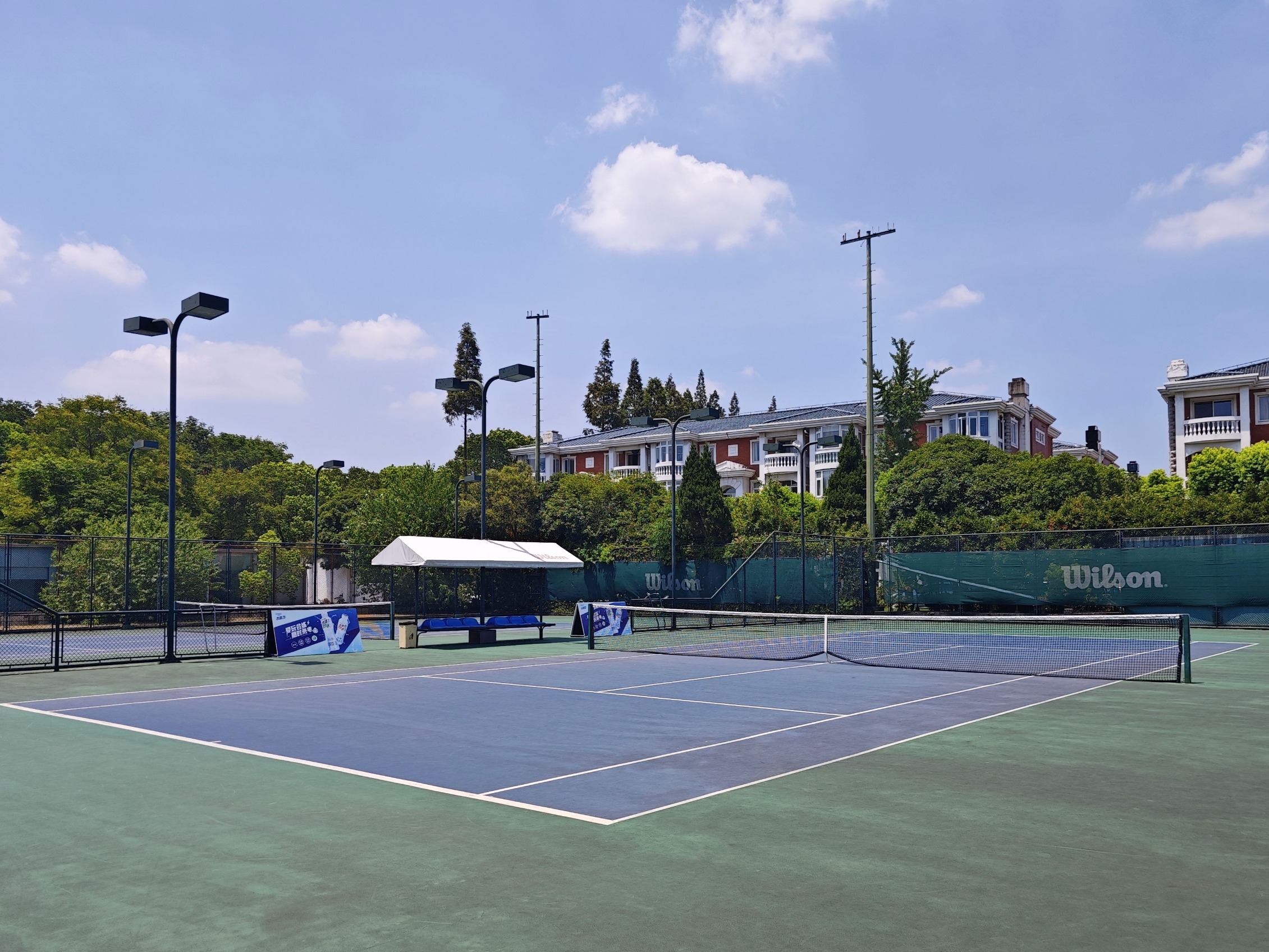 8月7日中午12点,仙霞网球中心室外场地因高温暂无人预约使用,上午及晚上爆满。新京报贝壳财经记者俞金旻摄