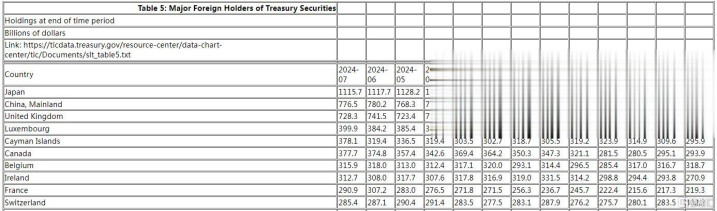 开曼群岛7月所持美债增加587亿美元,至3781亿美元。持仓规模超越加拿大成为持有美债第四多国家。