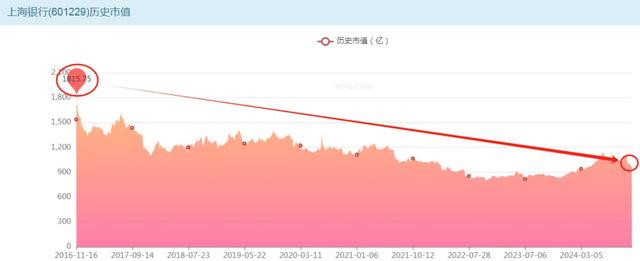 从总市值来看,根据亿牛网的数据,上海银行的历史市值一度超过1800亿。如今只剩下970多亿,蒸发了840多亿。