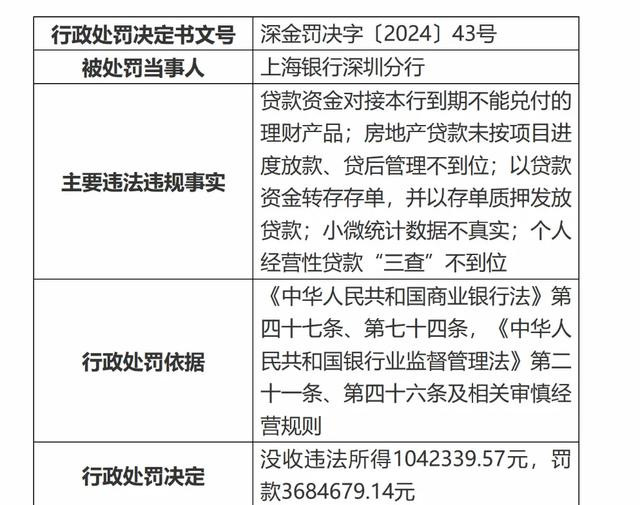 降薪之外,还有罚单。今年8月底,国家金融监管总局深圳监管局披露的罚单显示,上海银行深圳分行因房地产贷款未按项目进度放款被没收违法所得104.23万元,罚款368.47万元。同时,9名相关负责人受罚。